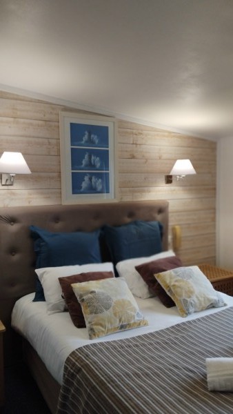 Située au 3ème étage, cette chambre de 16 m² dispose d'un lit double, d'un écran plat (avec Canal + et les chaînes anglaises) et le wi-fi. Salle de bain équipée d'une douche, WC, sèche cheveux, Gel Bio cheveux et corps, Savon mains Bio