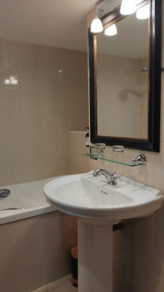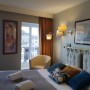 Située au 1er étage, Chambre de 19 m² avec un lit king size ou twin, un écran plat (avec Canal + et les chaînes anglaises) et le Wi-Fi. Salle de bain équipée d'une baignoire balnéo - WC - Sèche cheveux - Gel Bio cheveux et corps, Savon mains Bio